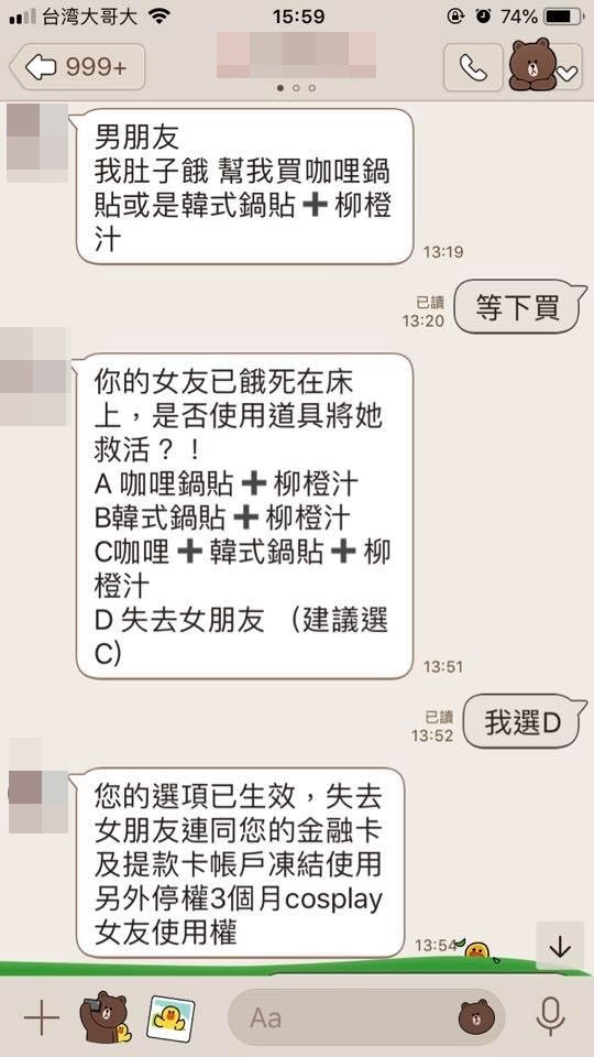 女朋友的陷阱100題,男生可要好好看清楚了。一名男網友在臉書貼出他和女友的對話,只見女方先召喚肚子餓