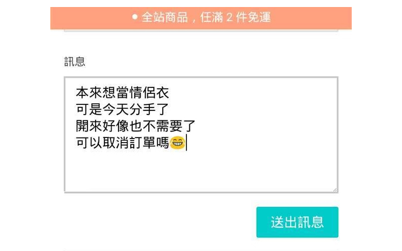 他跟賣家說因為分手了要取消訂單卻還是收到包裹,但是把包裹拆開後他想要給賣家一萬個好評! 馬上就要到情