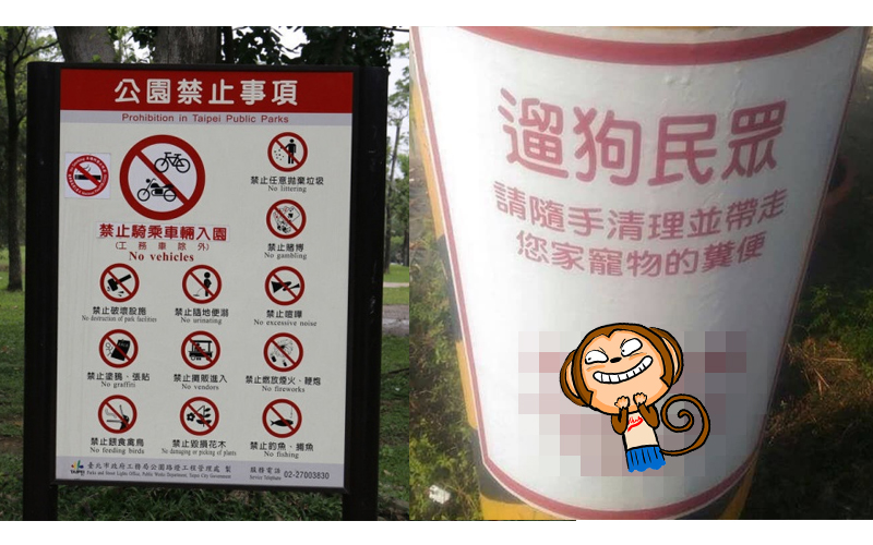 大家出門在外對這樣的告示應該不陌生吧!尤其是在公園,因為除了大人小孩,也會有很多毛孩出沒為了環境維護