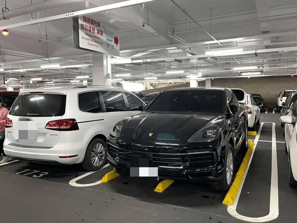 賣場出現保時捷超狂停車術!一名男子在大賣場停車場,發現一輛保時捷汽車竟停在推車格中,讓他火大「這樣別
