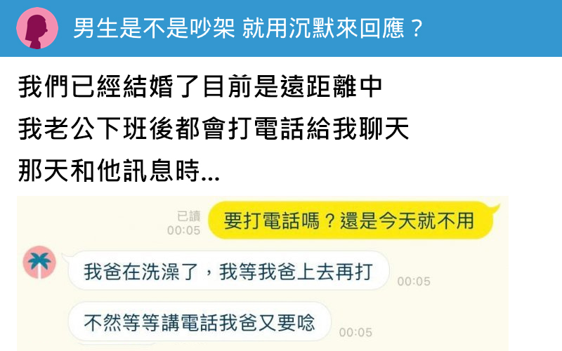 只要每次有點爭論或是不同的觀點他就會不太回答… 對了現在的我們已經結婚了 我們遠距離中,