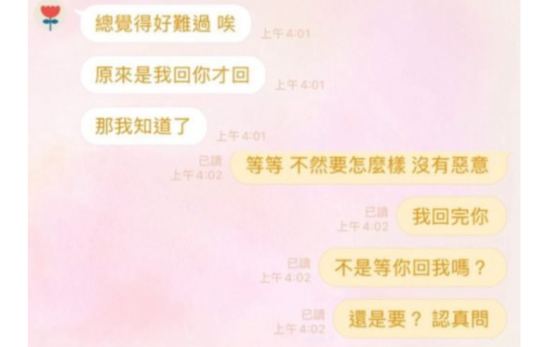 我們現在是有點吵架完還沒有完全和好,但是勉強處於和平的狀態。 他回完我之後就去上班了,我也回了他很多