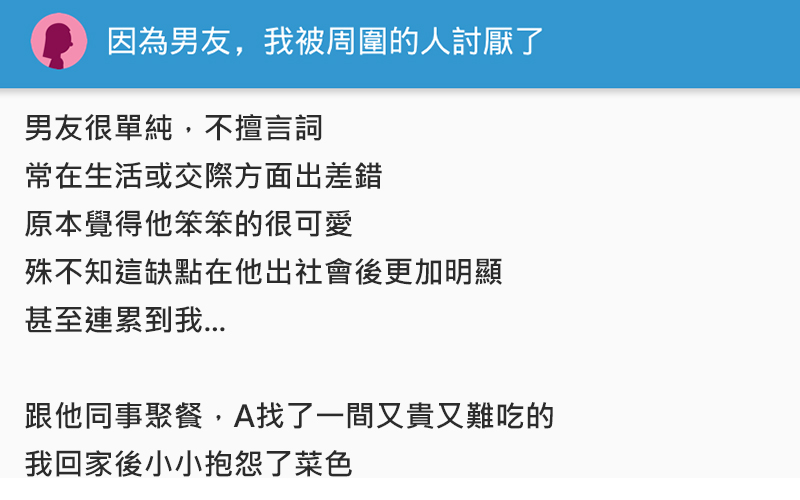 男友很單純,不擅言詞 常在生活或交際方面出差錯 原本覺得他笨笨的很可愛 殊不知這缺點在他出社會後更加