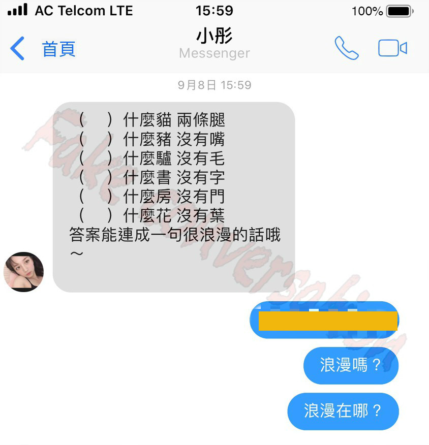 用藏頭詩耍浪漫…你懂了嗎? . . . 原答案…. 夜猫,雨珠,禿驢,中書,同房,心花。