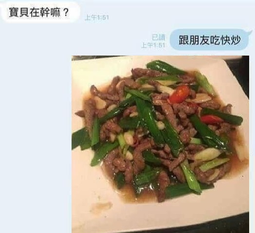 女友半夜查勤「你在哪裡?」他傳吃熱炒照企圖矇混…卻被眼尖發現破綻:GG了 有交過女友的男