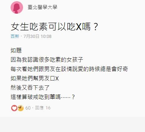 女網友問「女生吃素的話,吃Ⅹ算破戒嗎?」引來一堆「神回覆」 看完笑噴! 吃素的人在飲食上都要十分謹慎