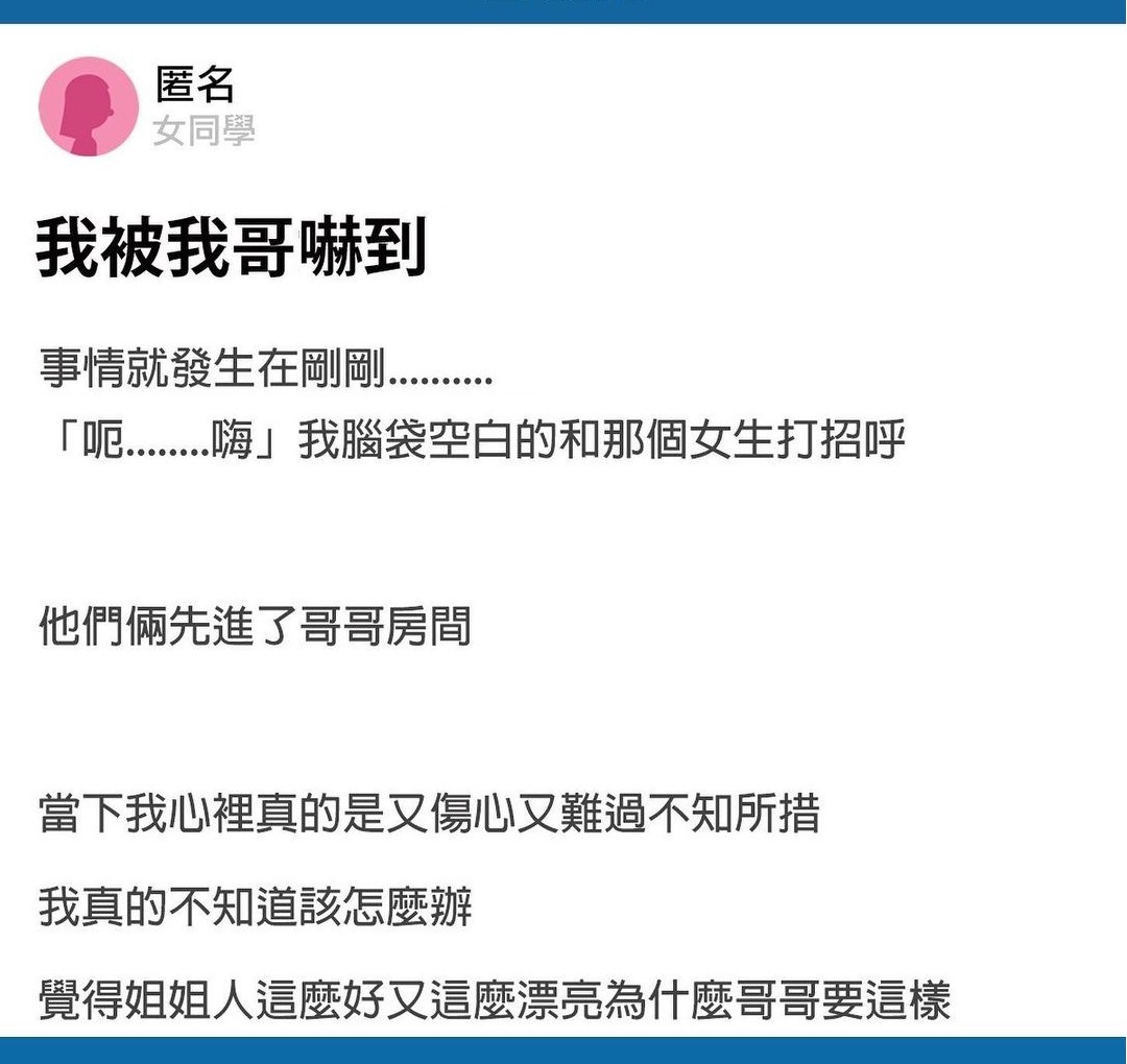 我哥帶了別的女生回房間 ↓↓↓↓↓↓↓↓↓以下全文↓↓↓↓↓↓↓↓↓ 延伸閱讀—R
