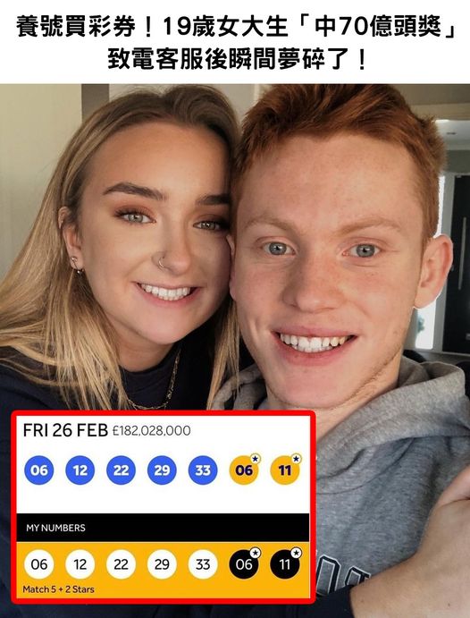 很多人會用固定號碼、「養號」的方式買彩券,希望有朝一日能夠一夜致富。 英國19歲女大生