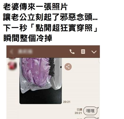 一名人夫就在臉書社團中貼出自己跟妻子的對話截圖,原來某天老婆突然傳給他一張充滿暗示意味的照片,讓他瞬