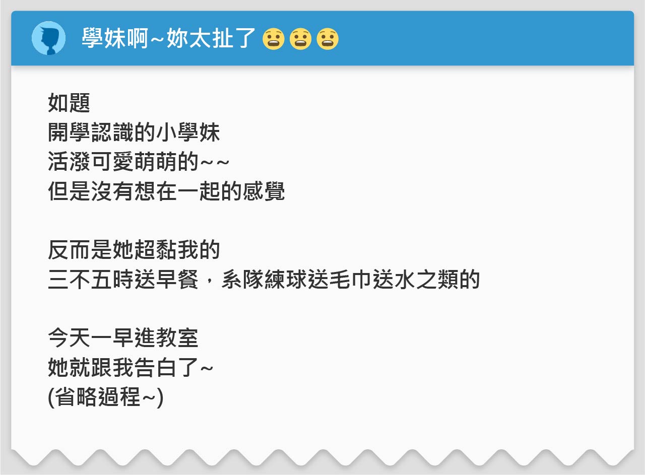 開學認識的小學妹 活潑可愛萌萌的~~ 但是沒有想在一起的感覺 (示意圖)