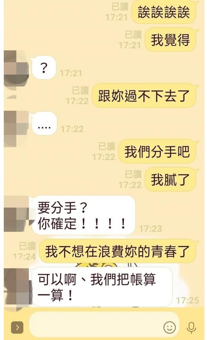 情侶交往吵架都是家常便飯的事情,輕微的床頭吵床尾和,嚴 重一點的就道不同不相為謀。 在臉書社團中有位