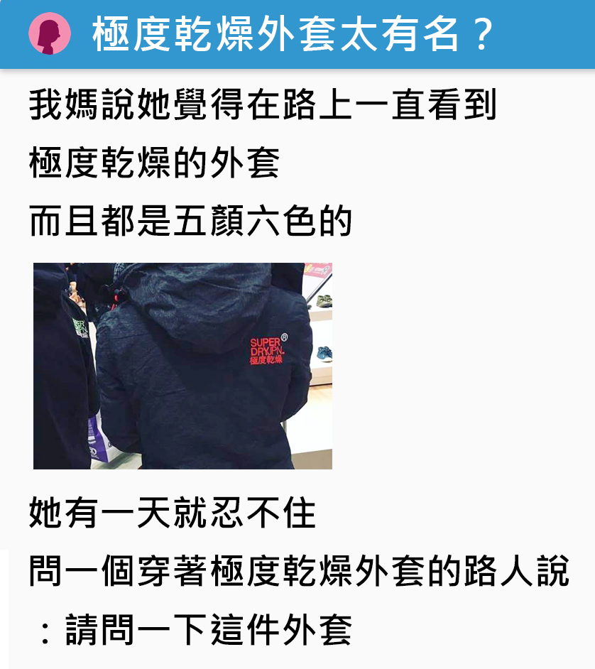 英國潮牌「Superdry極度乾燥」近幾年掀起熱潮,大街上處處可以看到這款外套。 近日有網友在Dca