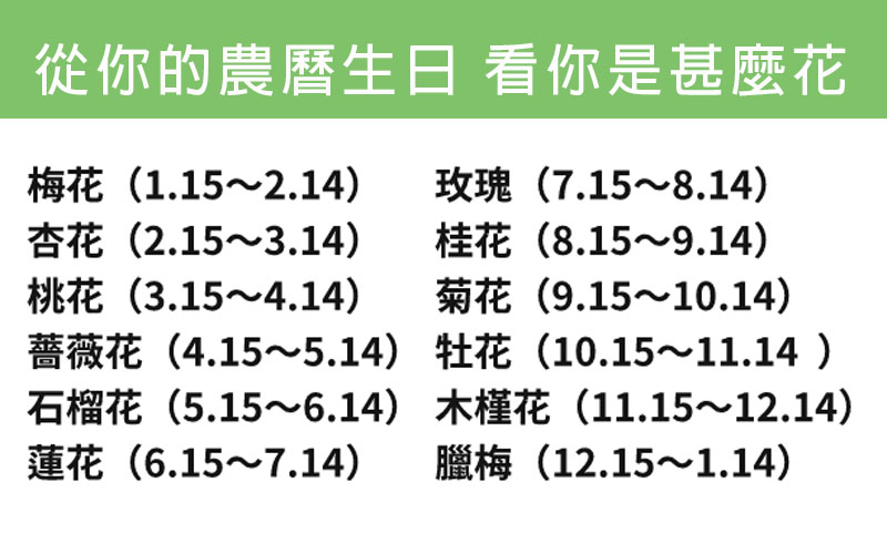 你的生日是幾月份?看看你是什麼花!按陰曆出生年月觀看: 一月出生:梅花 個性特徵:性格