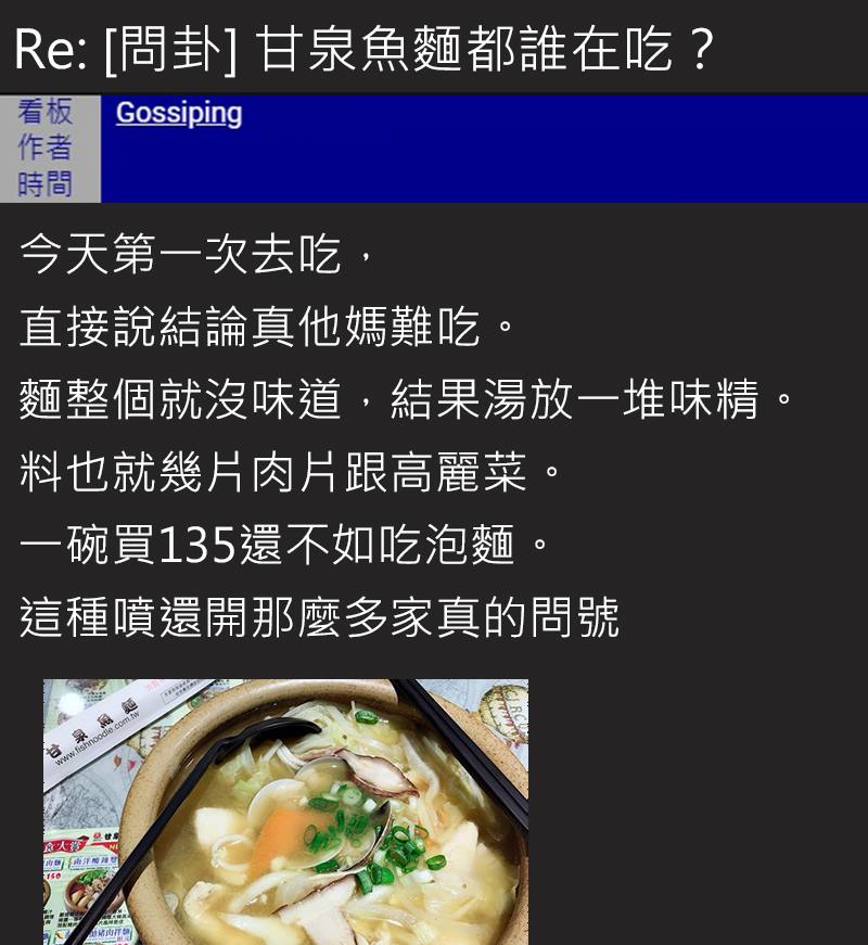 大家吃過甘泉魚麵嗎?不知道為什麼看到這個招牌就是不會想走進去耶 (圖/甘泉魚麵) 而且網路上很多人都