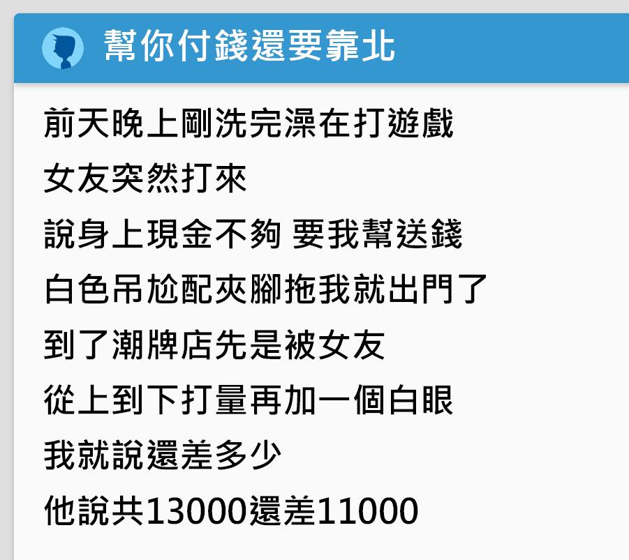 網友在dcard上發文分享: 前幾天收到了一則陌生訊息… 看了一下原來是前女友的男友跑來