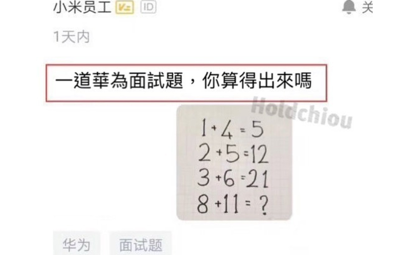 這道題據說是華為的面試題,當然到底是不是無從考證,我們姑且就算是,這也不是重點。 重點是,這道題答案