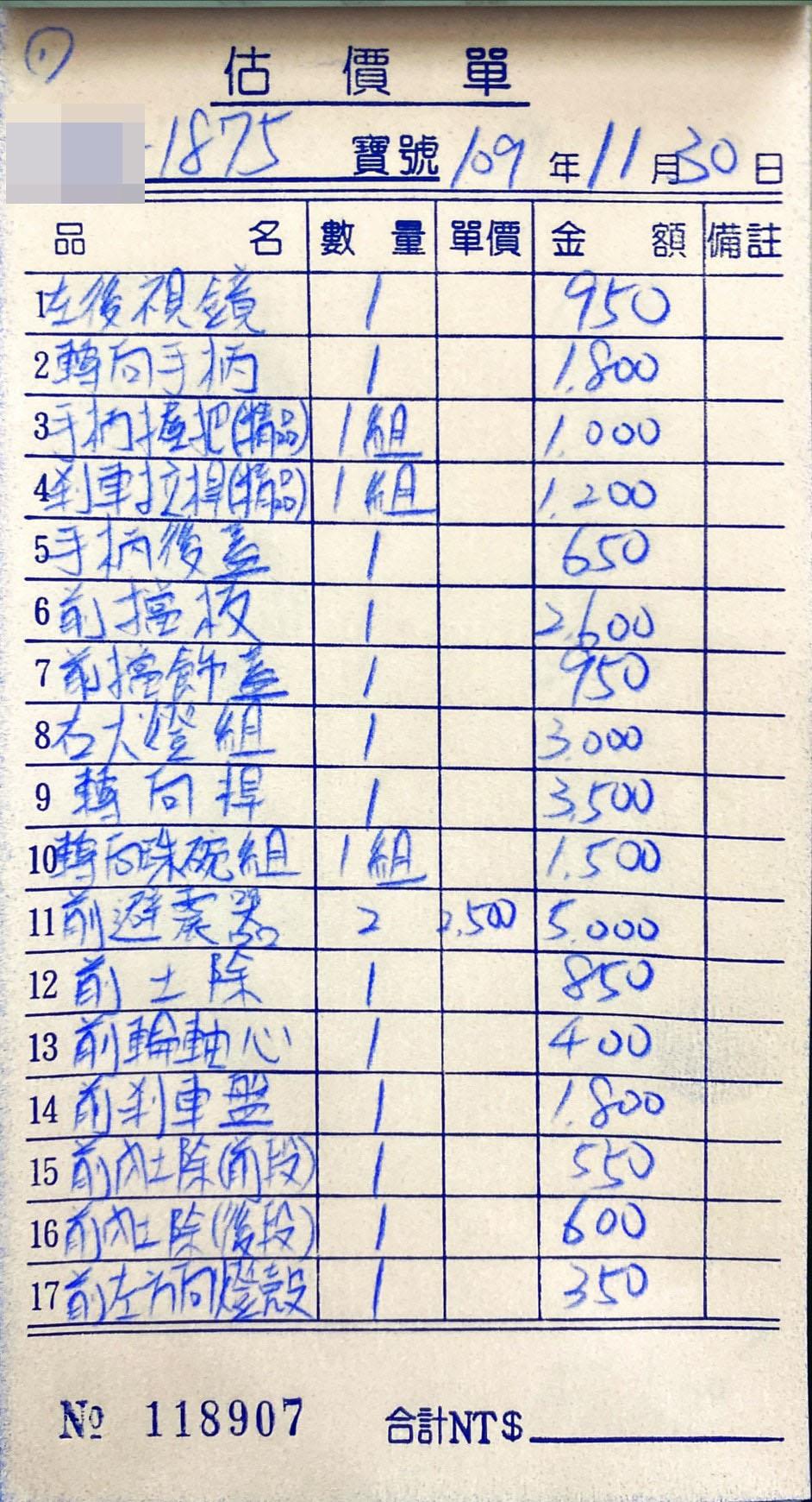 網友在臉書社團上po出幾張估價單,想詢問大家是否合理?! 朋友母親在路口跟人發生