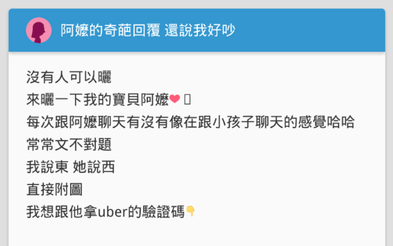 網友分享自己和阿嬤的對話: –以下原文– 沒有人可以曬 來曬一