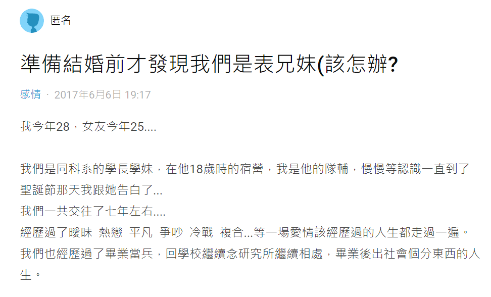 我今年28,女友今年25…. 我們是同科系的學長學妹,在他18歲時的宿營, 我是他的隊輔