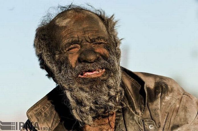 你平時多久洗一次澡?伊朗有一位87歲的老翁,他已經67年沒有洗澡了!長年居住在沙漠中的他,全身積滿厚