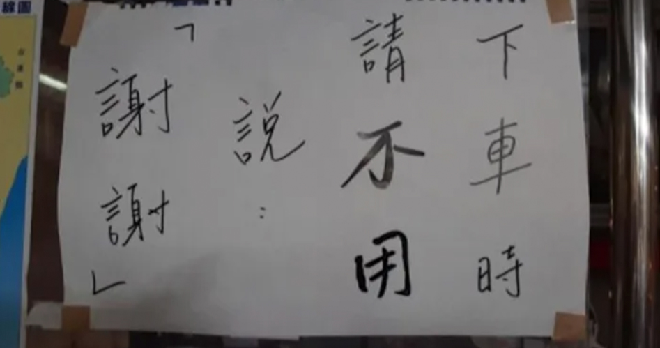 很多人搭公車時會跟司機說上一聲「謝謝」,認為這樣才有禮貌。 日前一名網友搭乘公車時,發現司機貼了一張