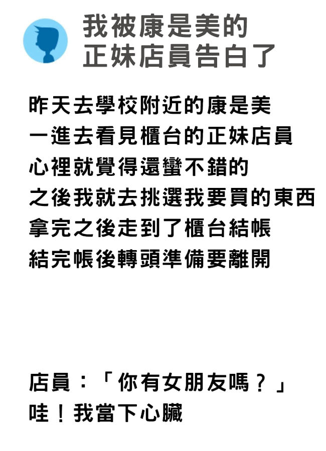 現在一堆店家員工都超正的,偶爾去買東西遇到正妹,真的會很開心 最近有網友在Dcard分