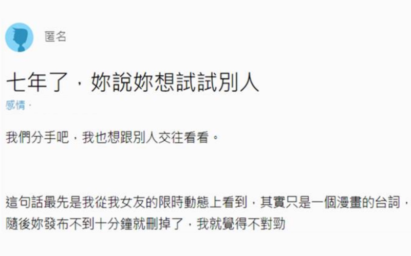 看到女友這樣說 真的是會心寒啊! 尤其是交往了七年這樣的感情七年得來不易啊! 俗話說「七年之癢」看來