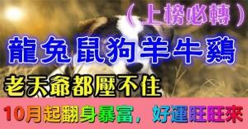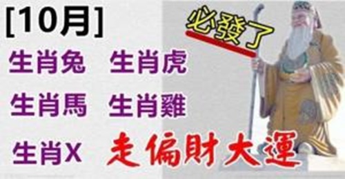 生肖馬:發大財 生肖馬的人在今年裡的流年運很旺,所以生肖馬的人在今年註定會有喜事發生。而在十月開始裡