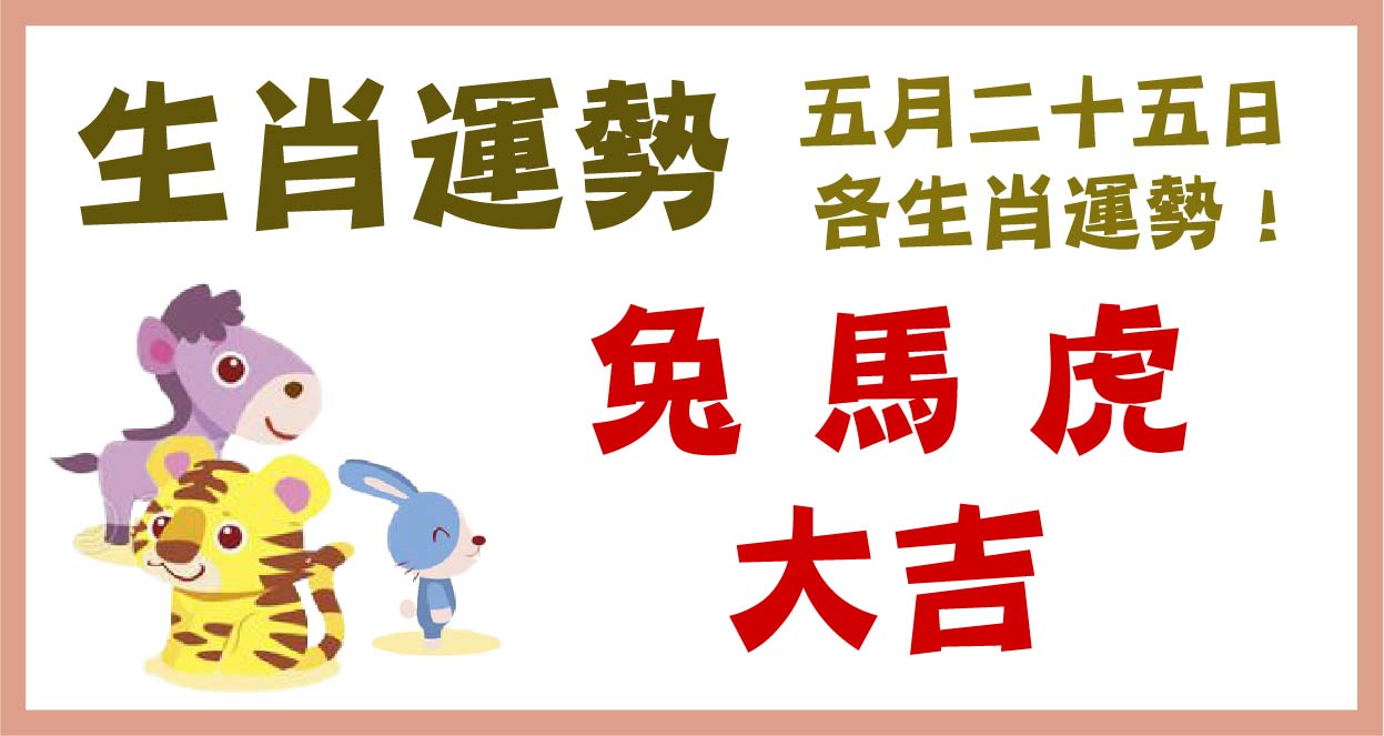 小運播報:2021年5月25日,星期二,農曆四月十四。 特吉生肖:兔、馬、虎 次吉生肖:猴、狗、蛇