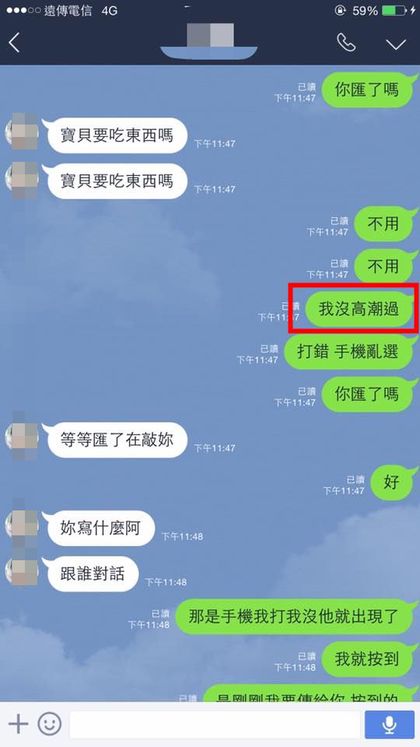 結果媽媽回問「寶貝要吃東西嗎?」沒想到女網友卻回了「我沒高 潮過」,讓女網友傻眼的趕緊補上「打錯,手機亂選」,但媽媽仍是不死心的說「你寫甚麼阿」、「跟誰對話」。