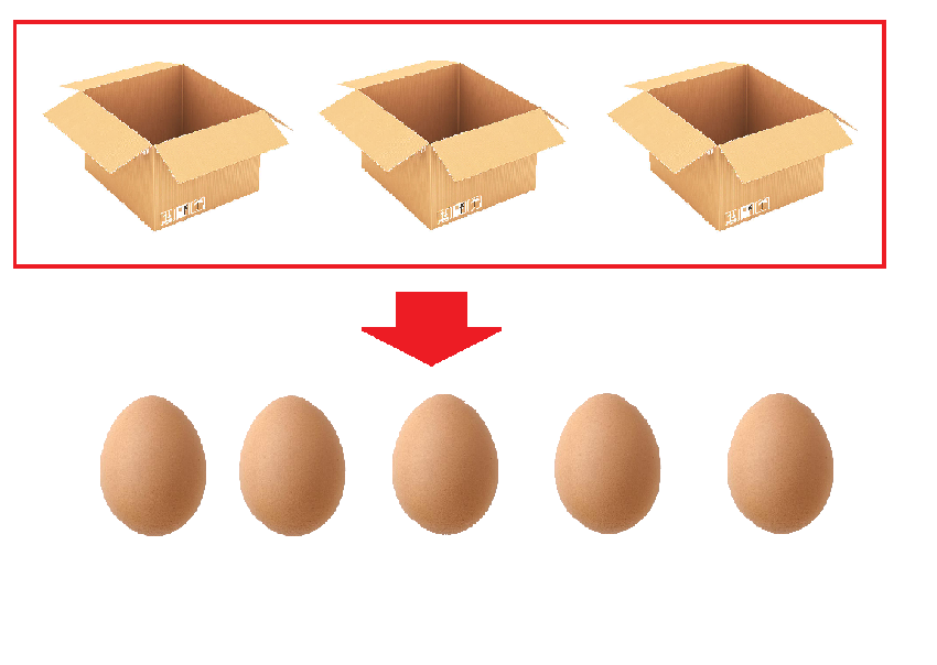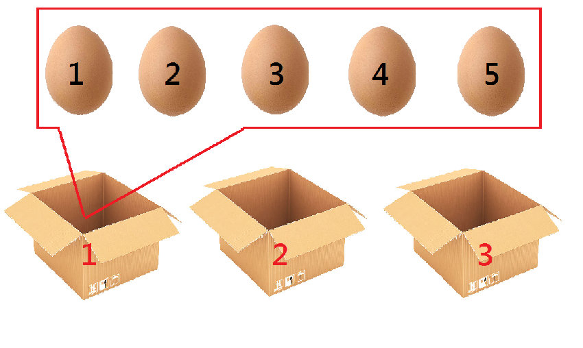 接著打開盒子後,發現每個盒子有5個雞蛋,他就寫下了5,