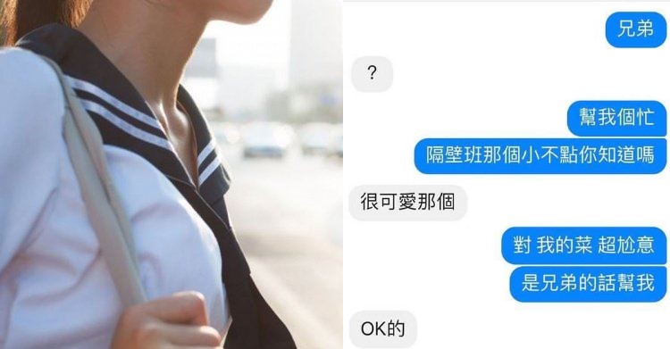 相信不少男生都有追女生的經驗,有時自己太害羞,就會拜託別人幫忙。就有一名男網友,看上了隔壁班的小隻馬妹子,完全是他的菜,可是又不敢追。於是請友人幫忙,果然是兄弟,爽快答應,都認識那麼久了還客氣什麼。