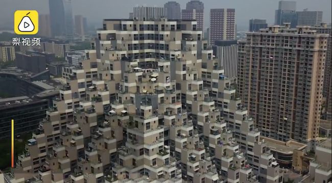這些外型獨特的大樓其實叫做「游站未來城」,在2013年已落成,底層是商店,其餘皆是是住宅區;大樓的每層好像樓梯般向上收縮,且每戶皆有陽台設計,可以看見屋外的景色。遠看就像埃及金字塔,又有點像是希臘聖托裡尼的白色小屋。