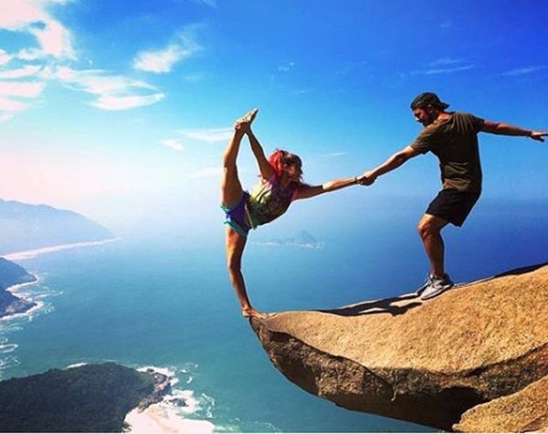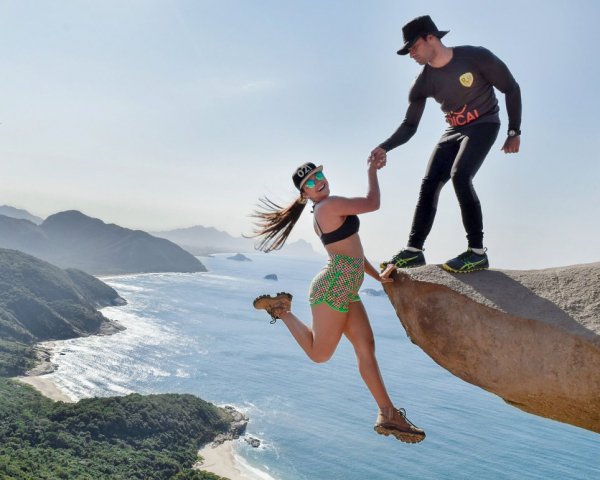 21歲的學生瑪歇莉(Marcelle Rangel da Cunha)跟28歲的未婚夫路易絲( LuizFernandoCandeia)在懸崖上驚險合影~