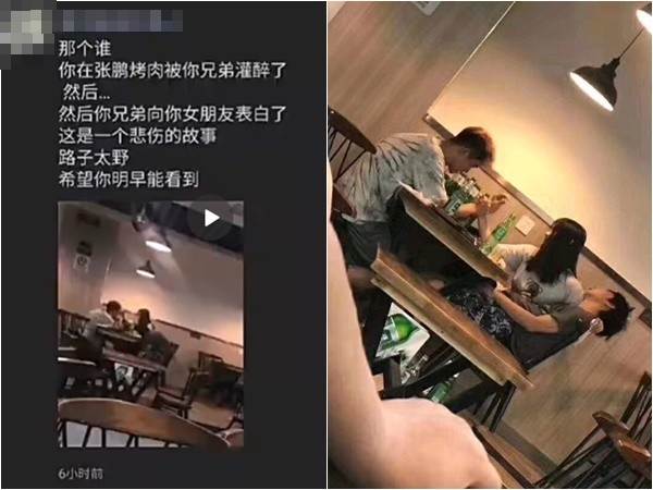 該名網友PO文表示,他日前吃烤肉時,發現旁邊桌子的男子被朋友灌醉,連身體都無法控制,只能依靠旁邊的女友攙扶,「你兄弟向你女朋友表白了,這是一個悲傷的故事,希望你明早能看到」。