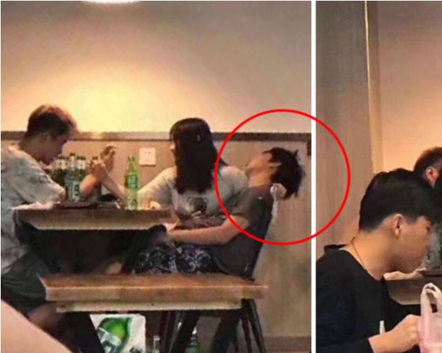 影片中顯示,灰衣男醉倒後頭向後仰,一旁的白衣女友貼心地用手挽著他的頭部,深怕他撞到;沒想到,對面的男子聊著聊著直接牽起女生的手,最後更是將對方拉到桌面上接吻,而灰衣男則頭靠桌子休息,什麼都不知道。