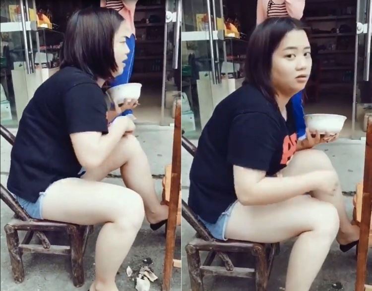 當初的萌妹已經變成坐在路邊穿著夾腳拖,