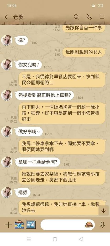 –老公突然傳訊自首:我載了除了你以外的其他女人上車…
