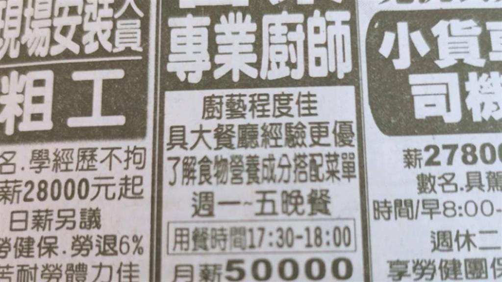 這名男網友在臉書社團發文,表示自己近期在找工作,他在報紙上看到一則「徵台菜專業廚師」的廣告。