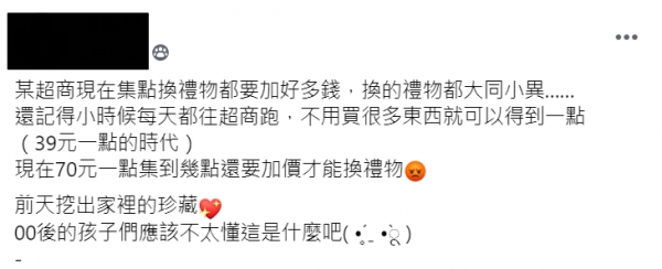 據報導,有網友在臉書社團「爆怨公社」發文說,現在看到很多加購商品都是大同小異,加上很多還要消費70元以上才算一點,點數集滿之後,還要再額外加價才可以兌換商品,覺得相當不划算