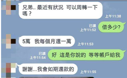 一位朋友向他借5萬元,還表示每個月會還1萬元。