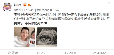 照片中,小可愛雙手拿著印有超音波照片的紙張,小倆口都露出幸福又滿足的笑容,向全天下昭告好消息之餘,也對肚子裡的小孩說道:「寶貝,爸爸媽媽歡迎你來到這個世界,我們一定會把最好的愛都給你。謝謝你讓我們有了新的身份,希望你健康成長、平安快樂,等待你的到來。」老公羊羊羊同時也在社群平台感性地說:「期待我們全新的家庭模式1+1=3。」