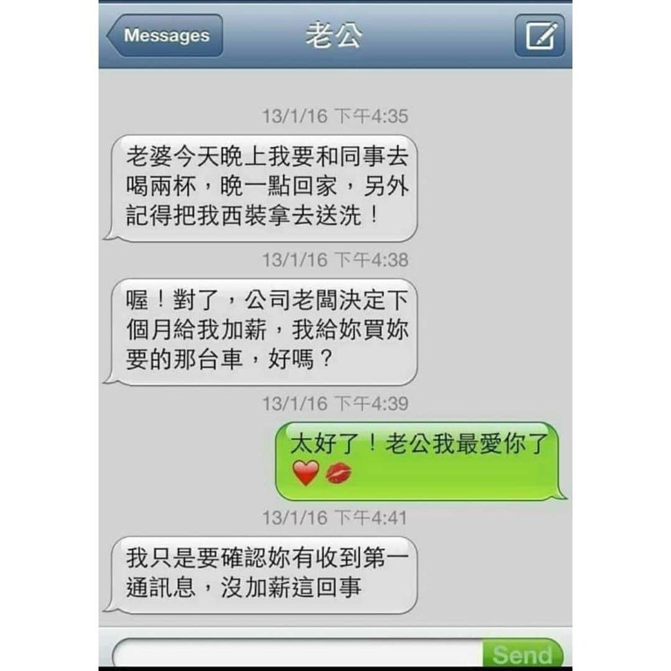 一名男網友在「爆廢公社」上傳了與老婆的對話紀錄,對話中老婆問他「這是什麼車」,他一看照片就立刻回覆「遠離他」「拜託」。