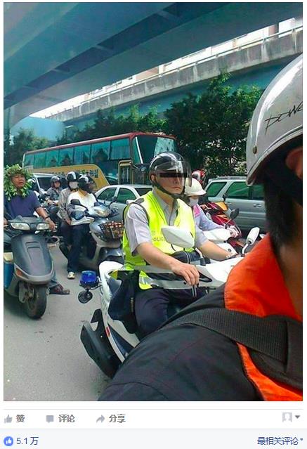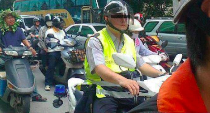 粉絲專頁「小老婆汽機車資訊網」之前就分享了一張照片,照片中前面的警察正在等紅燈,後面卻有名中年男子沒戴安全帽,只不過為了逃過警察的法眼,他竟然選擇這樣做。