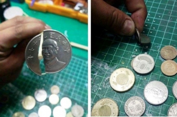 日前一名網友在《爆廢公社》上PO文「逛夜市時拿到奇怪的十元硬幣,中間可以對折,仔細看好像是雙層焊接的材質,能讓錢幣斷兩半又彈回來」?!