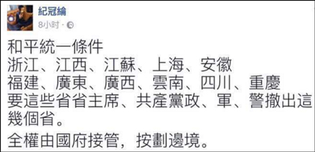 話說,紀冠綸並不是唯一一個意淫讓大陸割地的台灣人。