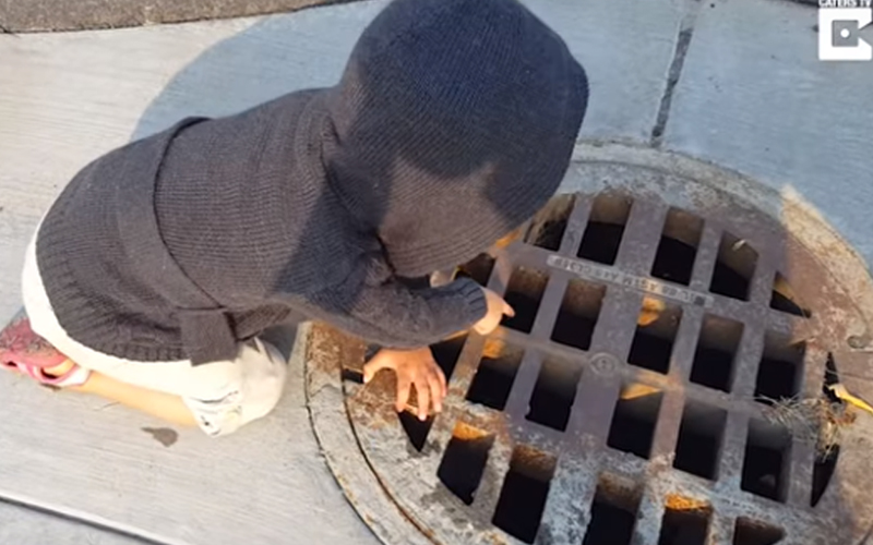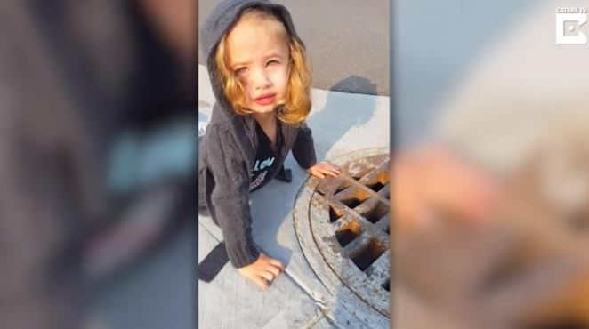 而一名加拿大的媽媽Joy在跟女兒Sahtaysha溜狗時,女兒居然突然趴下對著水溝蓋說話……