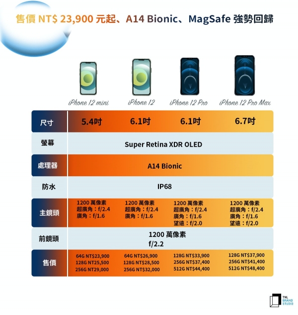 而這次新機iPhone 12 Mini系列最便宜只要23900元就可以入手,而iPhone 12 Pro Max系列最貴則高達48400元,大家可以選擇自己需要的入手~