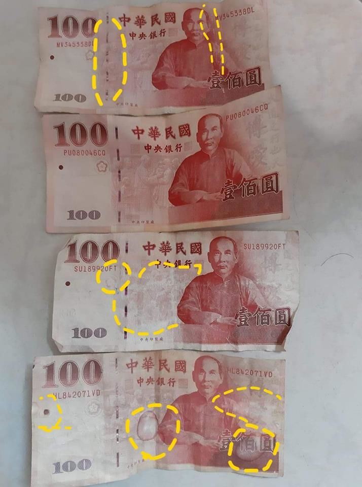 「都是真的….因為假鈔會做千元的….做100劃不來」