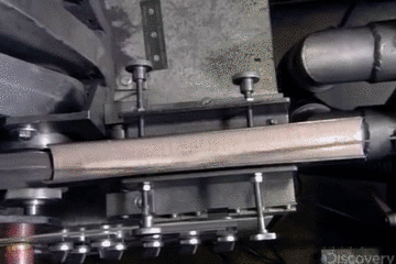 其中一撥會被送到下個機器那裡,然後在凹槽處塗上膠水。